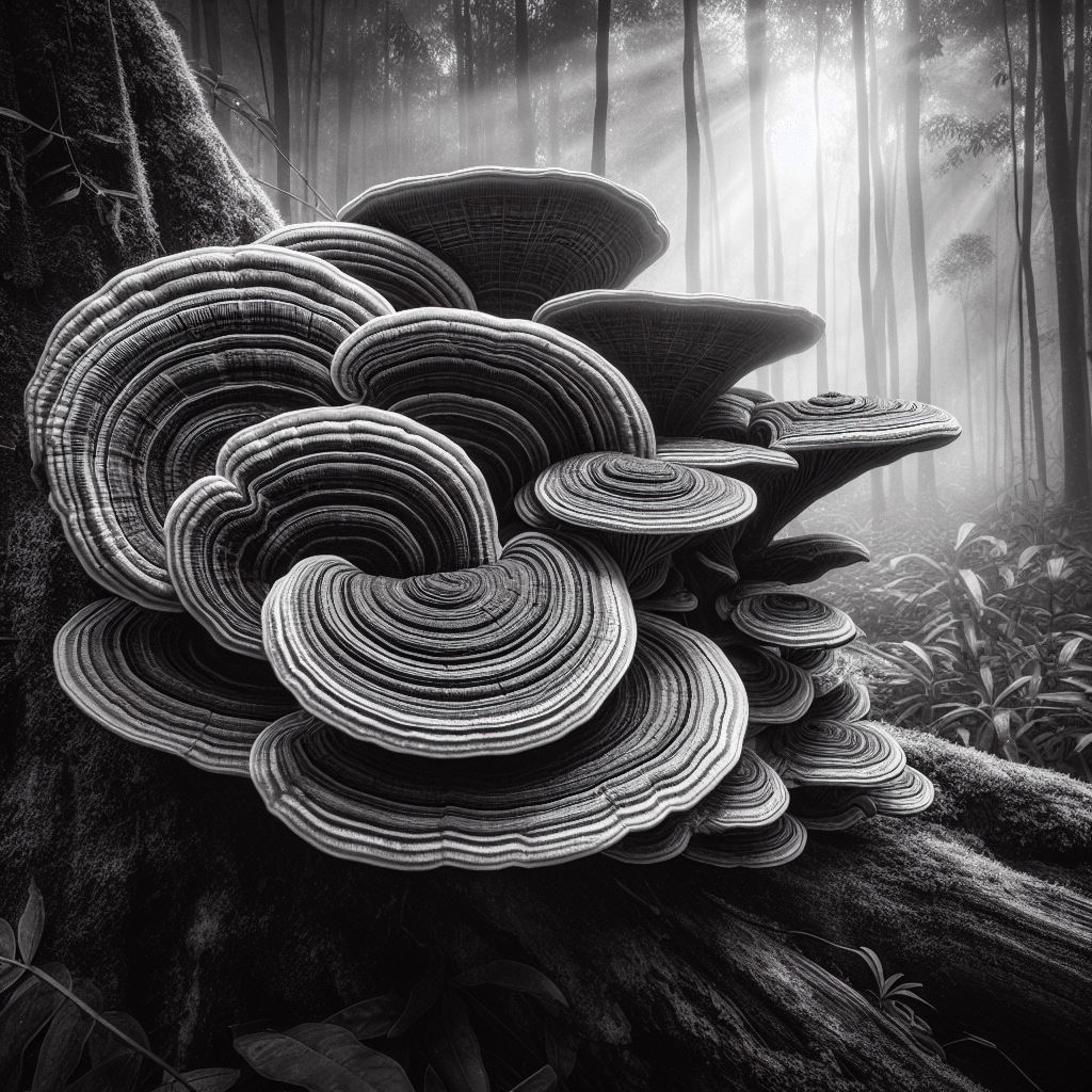 Turkey Tail, named for its colorful appearance resembling turkey feathers, Turkey Tail is a source of powerful polysaccharides that support the immune system's functionality. It may also have potential anti-inflammatory effects and is often used in complementary cancer therapies due to its immune-boosting properties.